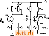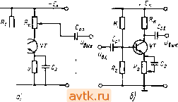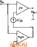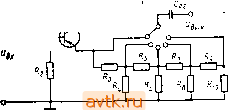 Главная » Электронные устройства автоматики 1 ... 9 10 11 12 13 14 15 ... 26 pa являются навесными компонентами, подключаемыми к соответ-ствующим точкам микросхемы. Общим недостатком усилителей с преобразованием сигнала усилителями типа МДМ является узкая полоса пропускания, так как модулирующая частота од должна быть в десять раз выше наибольшей частоты усиливаемого входного сигнала. При проектировании усилителей постоянного тока с минимальным уровнем дрейфа и широкой полосой пропускания используют так называемые комбинированные схемы, состоящие из дифференциального усилителя (ДУ) с широкой полосой пропускания и усилителя типа МД/vi (рис. 5.20). В схеме (рис. 5.20) медленно изменяющийся входной сигнал Ubx усиливается диф-ференциальным усилителем как по инвертирующему /, так и по неинвертирующему входу 2. Считая, что усилитель МДМ изменяет фазу входного сигнала на противоположную, Рис 5 20 напряжение на выходе дифференциального усилигеля определяется суммой усиленных напряжений по инвертирующему и неинвертирующему входам ![]() вых=--1АГ д^вх+>*Гид(АГ дмвх ± Л£ др)]. (5.41) где /Смдм - коэффициент усиления усилителя типа МДМ; /Сид -коэффициент усиления дифференциального усилителя; Д£др - напряжение дрейфа, приведенное к одному из входов дифференциального усилителя, в данном случае к входу 2. Преобразуем формулу (5.41) вых = -[/С„д(1 + АГ д„)/вх ± АГдДЯдр]. (5.42) Из формулы (5.42) следует, что дрейф в комбинированном усилителе по сравнению с обычным дифференциальным усилителем уменьшается в (1+мдм) раз, если считать усилитель МДМ бездрейфовым. Действительно, дрейф и полезный сигнал усиливаются дифференциальным усилителем в одинаковое число раз, а в комбинированном усилителе усиление полезного сигнала согласно формуле (5.42) в (1-{-/Смдм) раз больше, чем усиление сигнала дрейфа. Высокочастотная составляющая входного сигнала не подавляется в комбинированной схеме усилителя, а усиливается по инвертирующему входу 1 в Кия раз дифференциальным усилителем, имеющим широкую полосу пропускания. В качестве дифференциального усилителя обычно используют операционный усилитель, свойства которого рассмотрены в гл. 6. 114 § 5.5. Регулировка усиления сигнала в усилителях низкой частоты При проектировании усилителей низкой частоты обычно предусматривают возможность регулировки усиления, позволяющей изменять в нужную сторону уровень сигнала на выходе усилительного устройства. ![]() Рис 5 21 Величина, определяемая отношением коэффициентов усиления усилителя при двух крайних рабочих положениях регулятора, называется 1лубиной регулировки; Обычно регулировка усиления осуществляется во входной цепи или в первых каскадах усилителя, так как при использовании регулятора в промежуточных каскадах увеличивается вероятность перегрузки предыдущих каскадов и возникновения нелинейных искажений на выходе усилителя. Регулировка усиления может быть плавной и ступенчатой. На рис. 5.21, а приведена простейшая схема плавной регулировки с помощью переменного резистора (обычно типа СП, ВК, ТК), включенного в цепь базы или коллектора транзистора. Основное достоинство такой схемы - простота и большая глубина регулировки. К недостаткам следует отнести изменение амплитудно-частотной характеристики усилителя в процессе регулирования усиления. Если внутреннее сопротивление источника входного сигн