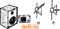 Рис. 138 Рнс. 139 Глапион , частью пьезоэлектрических телефонов и грочкороворнтелей является пьеэоэленект - властинка нэ ~ спецналыюго вещества, обладающего пьезоэлектрическими свойствами. Обычно пьезоэлемент состоит из двух*скле-екяых вместе r!. .JCTHHoK между которыми помещен тонкий металлический з,1ектрод На - наружиие поверхности пластинок также наклеены электроды, ковды которых соедикень! вместе. Один из концов пьезоэлеиента жестко закреплен на Kopnjxe акустического прибора, другой связан с излучателем (мембраной или диффузором). При подаче на электроды налриження звуковой частоты свобо^пый конец пьезоэлемента и соеднненный с ним излучатель колеблются г частотой приложенного напряжения, в результате чего мы слышим звук. Пьезоэлектрический способ преобразования сигнала обозначают узким прямоуголь иком, соответствующим пластинке, и двумя черточками, символизирующими обкладки (рис. 140) В акустических приборах, использующих электростатический принцип преобразования электрического сигиэла в звук, преобразователь выполпен в виде кондшсатора, состоящего из неподвижной н подвижной пластин, помещенных на небольшом расстоянии одна от-другой. Неподвижная пластина представляет собой достаточно массивный электрод, подвижная - тонкую мембрану. ZUh создания постоянной силы электростатического притяжения к обкладкам этого своеобраз>но1го конденсатора прикладывают постоянное напряжение. Напряжение звуковой частоты подают на резистор, включенный в цель постояниого напряжения Изменяющееся на обкладках напряжение вызывает нзмене-те силы электростатического притяжения, и мем^аиа колеб.1ется с частотой ![]() Л м перемедного напряжения. Электростатические приборы обозначают симйол; конденсатора постоянной емкости (рис. 141,а). Акустические приборы, действие которых основано на использовании ма нитострнкцяи - свойства некоторых ферромагнитных материалов сокращать^ или расширяться при намагннчиваши (либо изменять свою магнитную инду цию при механических деформащиях), выделяют знаком, состоящим из си\ вола катушки из двух полуокружностей и двунаправленной стрелки (рнс. 141,6; Стандарт предусматривает обозначение и других особенностей ксжструкт приборов этой группы. Так, если необходимо подчеркнуть, что телефоны cna жены оголовьем, к основному символу добавляют небольшую дужку (ри1 142,о), а если надо изобразить стереофонические телефоны, в него вводя символ таких прнборов - atiaK в виде двух взаимно перпендикулярных стре лок (рнс, 142,6). В последнем случае акустический прибор изображают с не обходимым (соответствующвд* реальному) числом выводов, увеличивая, есл> нужно, размер основндао символа. Общин символ громкоговорителя нспользуют не только для обозначение динамических головок, ио и для обозначения абонентских громкоговс9ЯгеЛеи а также целых акустических систем, содержащих несколько головок. Зозчож ность регулирования громкости звучания (например, в абонеттских paм^кaгo-ворителях) показывают знакам регулирования (рнс. 143,а), Головку, выпол ияющую поочередно функции громкоговорителя и микрофона (так ее н^дко нспользуют в малогабаритной amiapirype симплексной связи), изображают на схемах со знаком обратимости преобразования - обок>доострой стрелкой на ООН симметрии (рис. 143,6). Рядом с лознционным обозначением динамических головок громкоговорите