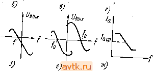 Uebix ![]() Рис. 1119. Характеристика правильно настроенного частотного дискриминатора или детектора отношений- а; характеристики неправильно настроенных частотных дискриминаторов или детекторов отношений - б-е; характеристика фазового детектора - ж рис. 46,47) на частоты выше или ниже несущей ПЧ звукового канала. Меры, которые нужно принять для устранения перечисленных выше неисправностей, ясны из описакия их причин. Настройка фазового детектора весьма проста. Лам- новый вольтметр переменного тока подклк>чается к ано- I ду детекторной ла.мпы, а ГСС с частотой колебаний, равной промежуточной частоте звукового канала,- к управляющей сетке этой же лампы (сигнал ГСС должен быть модулирован). Сердечник (или подстрочный конденсатор) контура Lz, Сз в цепи третьей сетки лампы фазового детектора (см. рис. 48) вращают до наименьших показаний лампового вольтметра. Правильность настройки проверяют,- изменяя частоту колебаний ГСС в обе стороны от несущей ПЧ звукового сопровождения. При этом показания лампового вольтметра должны увеличиваться строго симметрично. Вместо лампового вольтметра можно использовать миллиамперметр на 5-10 ма, который включается в разрыв анодной цепи детекторной лампы. В этом случае на ГСС, присоединенном к управляющей сетке, устанавливается несущая ПЧ звукового сопровождения и частота его колебаний во время .налаживания детектора остается неизменной,. Измеряется анодный ток детекторной лампы при различных настройках коитура Ls, Сз, и по результатам измерений строится кривая, показанная на рис. Ы9,ж. На этой кривой находят среднее значение анодного тока, по которому устанавливается окончательная настройка контура La, Сз. Для настройки частотного детектора, построенного по схеме, изображенной на рис. 49, ГСС включается так же, как при настройке дискриминатора или детектора отношений, а ламповый вольтметр или авометр - к месту соединения конденсаторов Сг и Сз и шасси. После установки на ГСС несущей ПЧ звукового канала и максимального выходного напряжения ГСС включается в контур анода лампы ограничителя (La, С4), который настраивается на максимальные показания при-, бора. Настроив частотный детектор, переходят к настройке усилителя ПЧ звукового канала, которая производится так же, как и настройка усилителя ПЧ обычного супергетеродинного приемника. ГСС с частотой колебаний, равной ПЧ звукового канала, подключается к переходному конденсатору, через который напряжение ПЧ звукового канала снимается на вход усилителя ПЧ (рис. 120, а) или же непосредственно к управляющей сетке лампы первого каскада усилителя ПЧ (рис. 120,6). В последнем случае контур от управляющей сетки лам- 1 ... 6 7 8 9 10 11 12 13 |