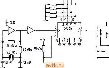 Длина регистра сдвига обычно выбирается кратной 8. В этом случае требуется более двух точек подключения ОС. Вот эти магические цифры: т Точки подключения ОС Длина 8 4, 5, 6 255 16 4, 13, 15 65535 24 17, 22, 23 16777215 В ИМС генератора шума ММ5837 используется 17-разрядный регистр с выходом для подключения ОС на 14-й ячейке. Схема использует внутренний генератор тактовых импульсов, работающий с частотой 80 кГц, и вырабатывает на выходе белый шум в диапазоне до 35 кГц (затухание на частоте среза -3 дБ) с периодом повторения порядка 1,6 с. При использовании 33-разрядного регистра, работающего с тактовой частотой 1 МГц, период повторения может превышать 2 ч, а с помощью 100-разрядного регистра, тактируемого с частотой 10 МГц, можно было бы получить период повторения, в миллионы раз превышающий возраст Вселенной! Свойства последовательностей максимальной длины* Тактируя один из таких регистров, мы сформировали на его выходе псевдослучайную двоичную последовательность. Выход можно взять из любой точки регистра, но удобнее всего использовать последний, т-н разряд. Последовательности максимальной длины обладают следующими свойствами: 1. В одном полном цикле {К тактовых импульсов) число единиц на одну превышает число нулей . Дополнительная единица возникает благодаря исключению нулевого состояния регистра. Таким образом, при значениях длины регистра, которые обычно используются на практике, дополнительная единица не может оказать какого-либо влияния: 17-разрядный регистр вырабатывает за один период 65 536 единиц и 65 535 нулей. 2. В каждом цикле {К периодов тактовой частоты) половину всех единиц составляют одиночные , четвертую часть - двойные (то есть две следующие шдряд), восьмую часть - тройные и т. д. То же самое относится и к последовательно идущим нулям, разумеется, за исключением пропущенного. Это говорит о том, что вероятность появления на-. чала и конца единичного состояния не зависит от результата последнего переброса и, следовательно, вероятность завершения цепочки последовательно возникших единиц или нулей для каждого переброса составляет одну вторую. (Это не совсем то, что понимают под законом усреднения в обыденном смысле.) 3. Если последовательность полного цикла {К периодов тактовой частоты) сравнить с последовательностью такой же длины, но сдвинутой на любое число п бит (где п не равно О и не кратно К.), то число несовпадений будет превышать число совпадений на единицу. Выражаясь научным языком, автокорреляционная функция такой последовательности при нулевой задержке представляет собой дельта-функцию Кронекера, а во всех остальных точках равна - Отсутствие боковых лепестков автокорреляционной функции делает ПСДП весьма удобными для радиолокационных систем определения дальности. Упражнение 9.5, Покажите, что приведенная последовательность, сформиро-ваннаи с помощью 4-разрядного регистра сдвига (с выходами ОС, взятыми при п=3, т=4), удовлетворяет указанным свойствам. Считаем, что выход берется с разряда Q: 100010011010111. 9.36. Формирование аналогового шума с использованием последовательностей максимальной длины Преимущества цифровой генерации шума. Как указывалось выше, цифровой сигнал, получаемый на выходе регистра сдвига максимальной длины с обратной связью, может быть преобразован в белый шум с ограниченным спектром с помощью НЧ-фильтра, частота среза которого с